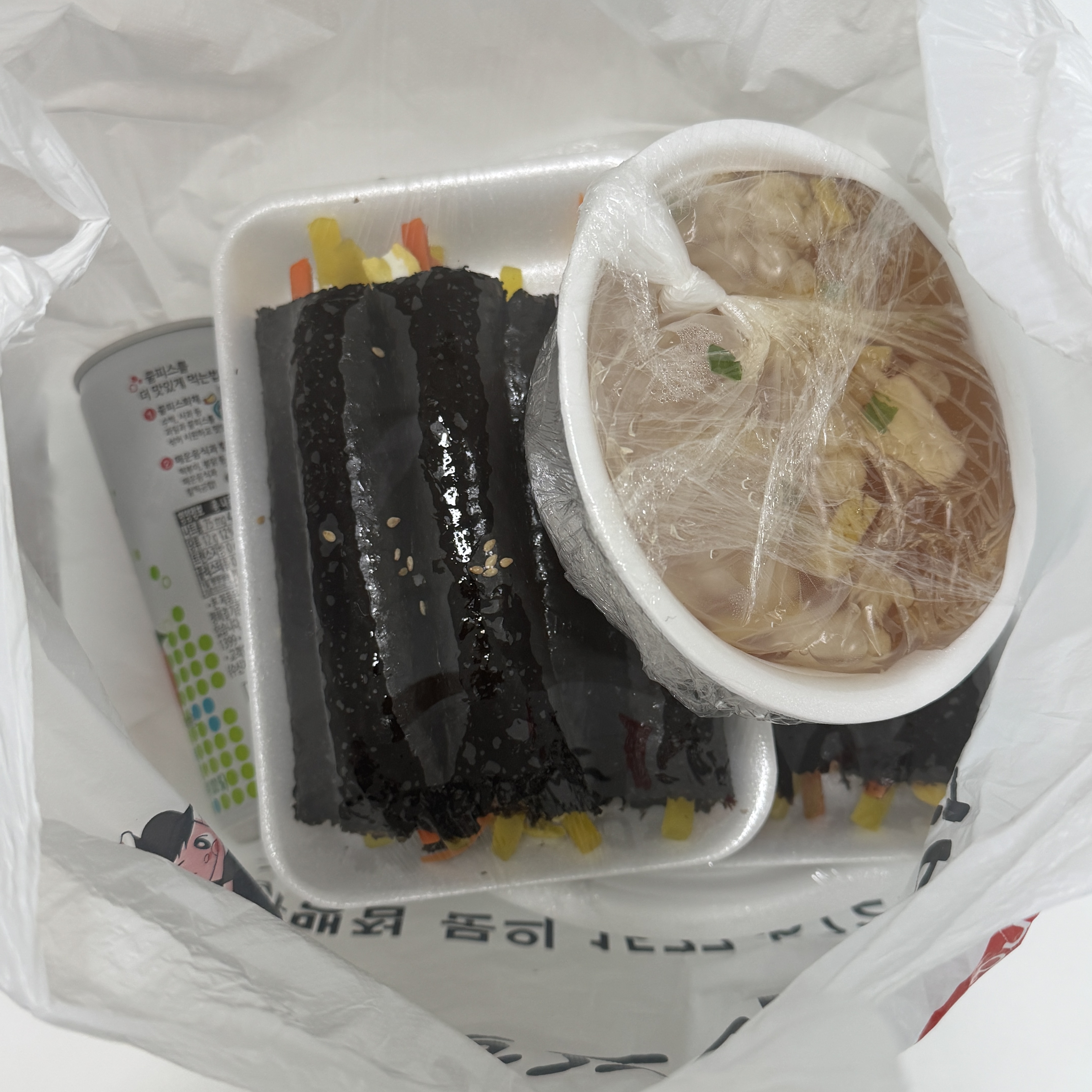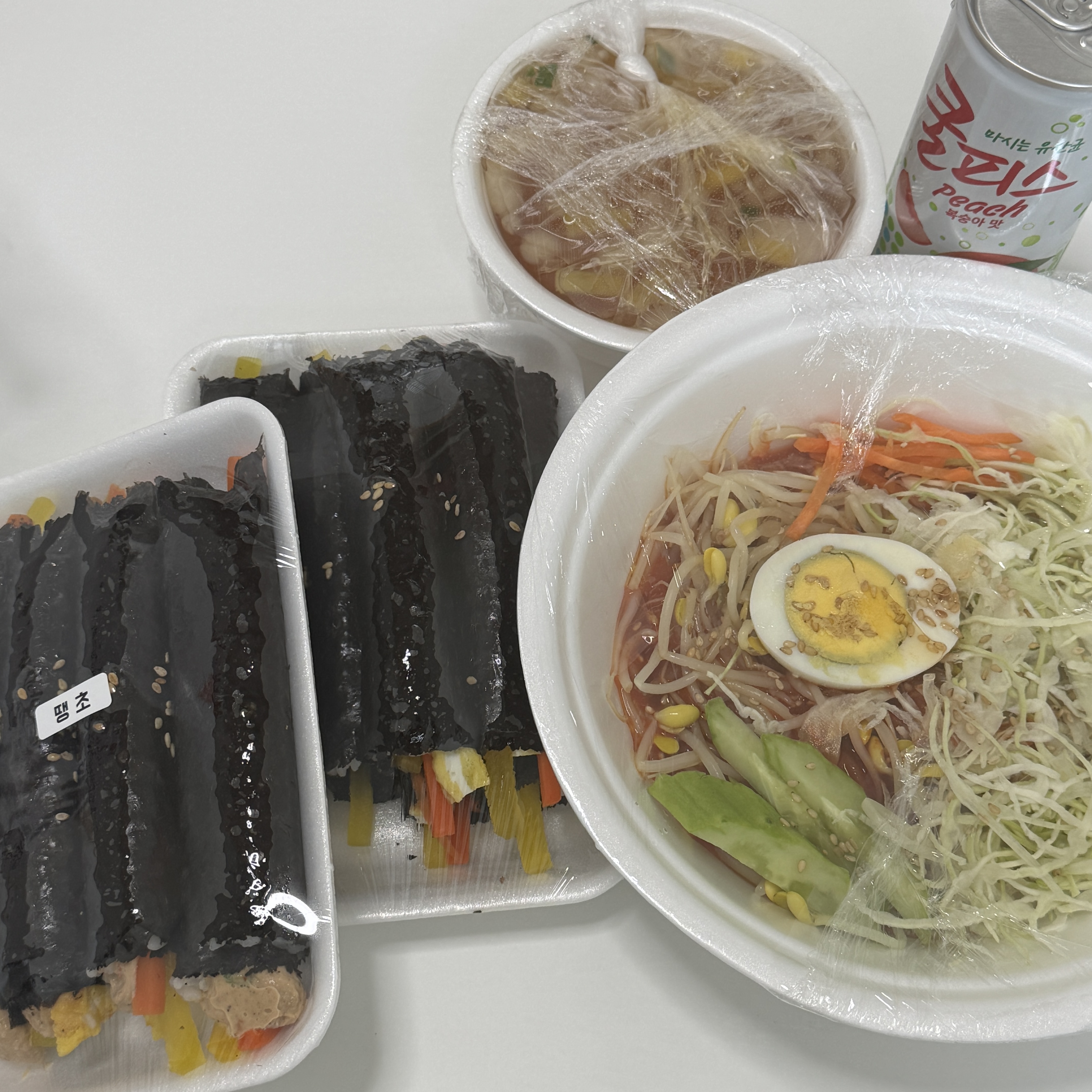 이렇게 쫄면이랑 꼬마김밥 5줄만먹어도 배불렀습니당